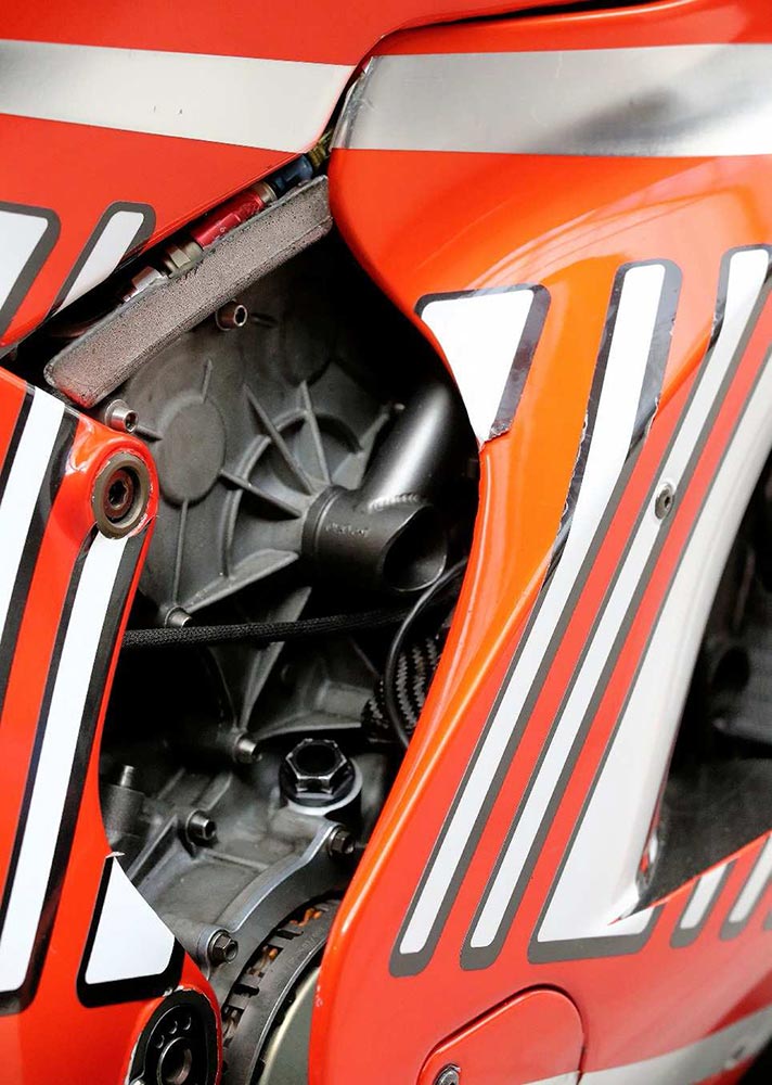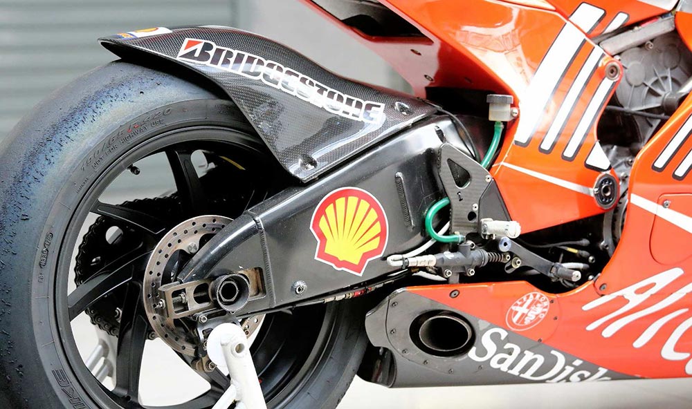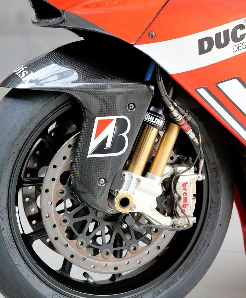 El chasis, también de tubos de acero, fue rediseñado aprovechando que el motor era más corto para reposicionarlo y mejorar la distribución de pesos. Además de la potencia superior a la de la competencia y las gomas Bridgestone, otra de las principales ventajas de las Ducati era el menor consumo de combustible.