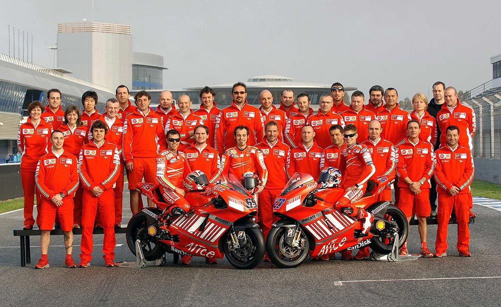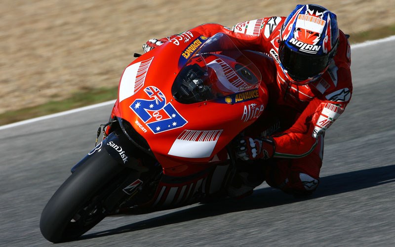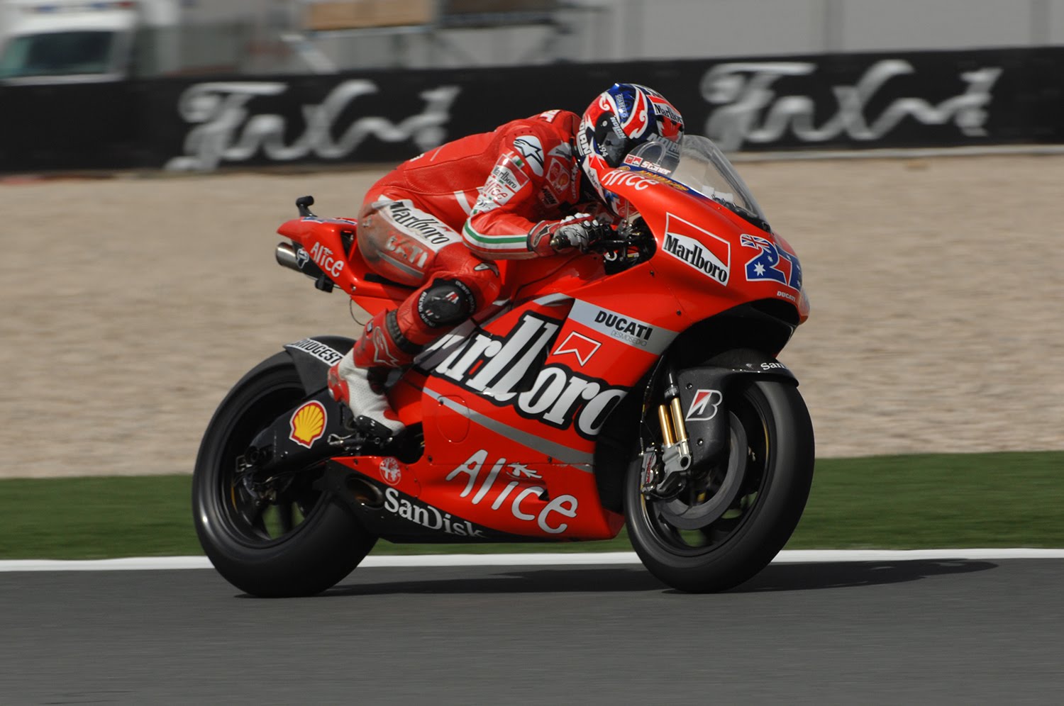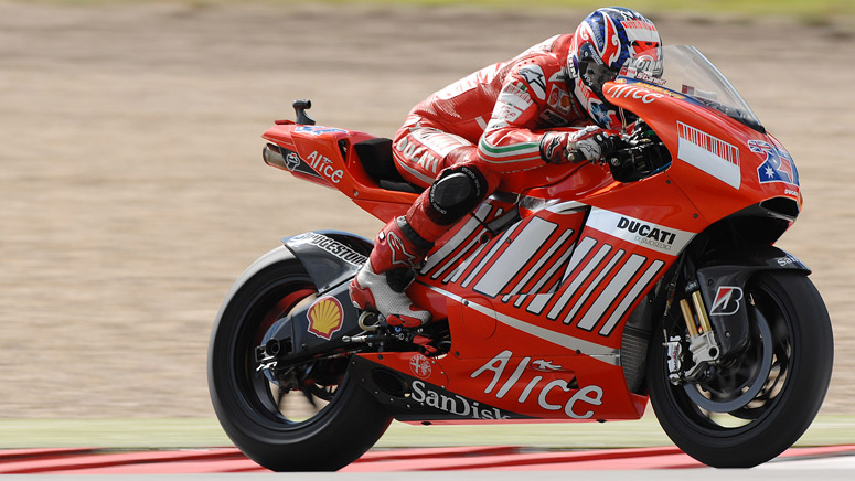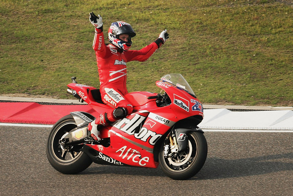 Stoner, con su talento inigualable, sorprendió a todo el mundo ganando en su debut con Ducati el Gran Premio de Qatar cosechando un total de 10 victorias en el año, y triunfando en el Campeonato de MotoGP. Fue el primer, y único hasta hoy, campeonato ganado por Ducati, el primer Campeonato de Bridgestone, y el primero de Stoner. Por su parte Capirossi logró ganar en Japón y obtener un magro séptimo puesto en el campeonato.