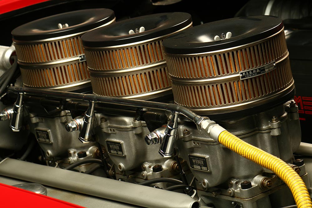 Motor V12 delantero, 4.494cc, un árbol de levas a la cabeza por lado, 2 válvulas por cilindro, 3 carburadores Weber 40 IF 4/C, 340 BHP a 7.000 RPM