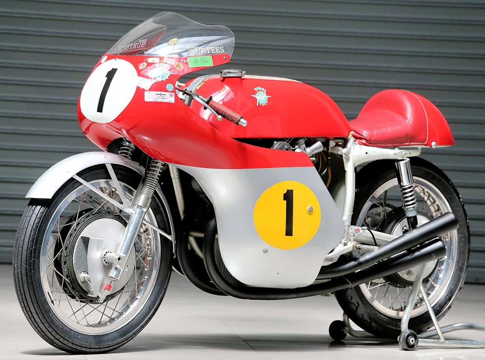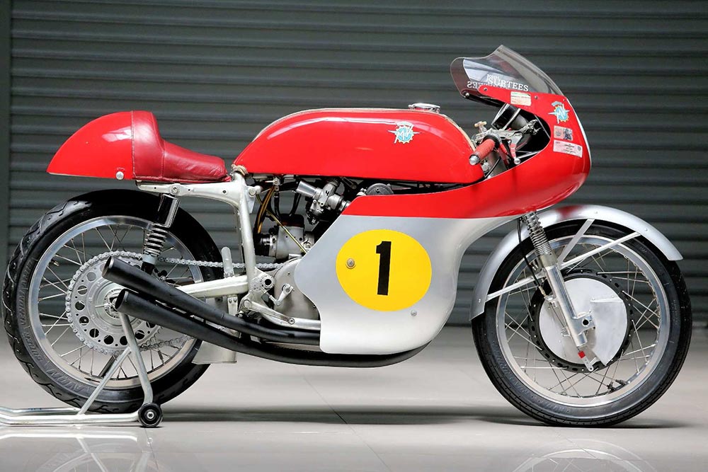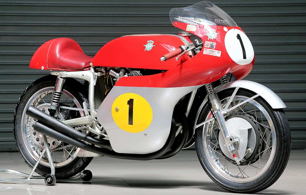 John Surtees fue Campeón del Mundo de 500cc en 1956, y Subcampeón en 1957. Aún cuando no existen registros de cuales cuadros y motores corrieron en cada carrera, solo se conocen dos MV Agusta de 500cc de carrera anteriores a 1965 en la actualidad. Una de ellas (cuadro 1102) está en el Barber Museum en Alabama, Estados Unidos, y la otra es este ejemplar. Esta moto fue vendida en 1996 directamente por John Surtees y luego participó en varios eventos, entre ellos el Goodwood Revival de 2003 donde fue conducida por el extraordinario Freddie Spencer, Campeón del Mundo en 1983 y 1985. Es un ejemplar único por su rareza y por el agregado de haber sido corrida por el 7 veces Campeón del Mundo de Motociclismo y Campeón del Mundo de Fórmula 1 (Ferrari) John Surtees, quien es la única persona en haber conseguido esta distinción en 2 y 4 ruedas.