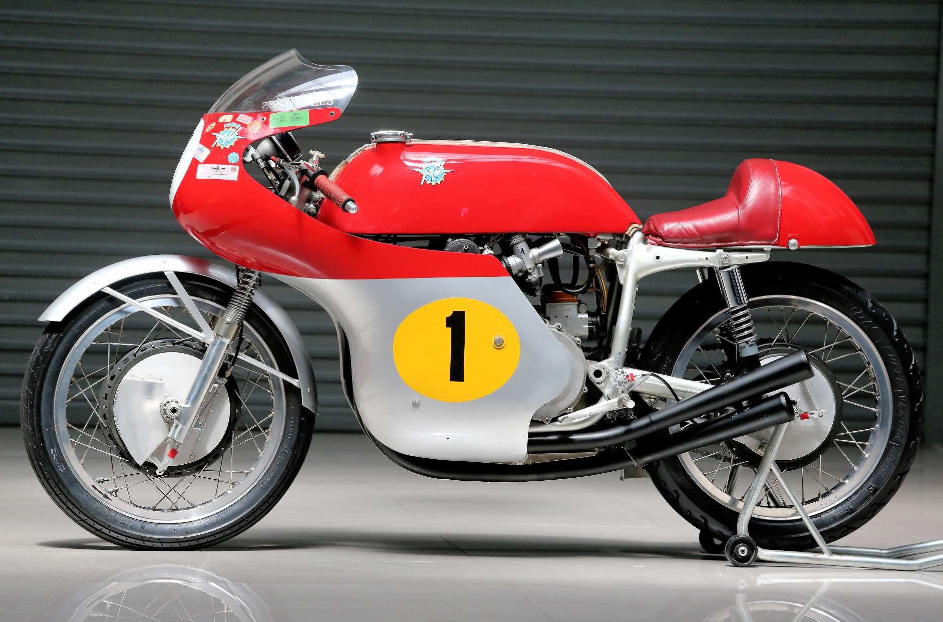 Entre 1951 y 1965 los cuatro cilindros de 500cc MV Agusta ganaron nueve campeonatos del mundo y se adjudicaron 66 victorias en carreras. Según el experto y autor de más de una veintena de libros Ian Faloon, la MV Agusta 500 Four es la moto más importante de su época, y este es el mejor ejemplar de todos.